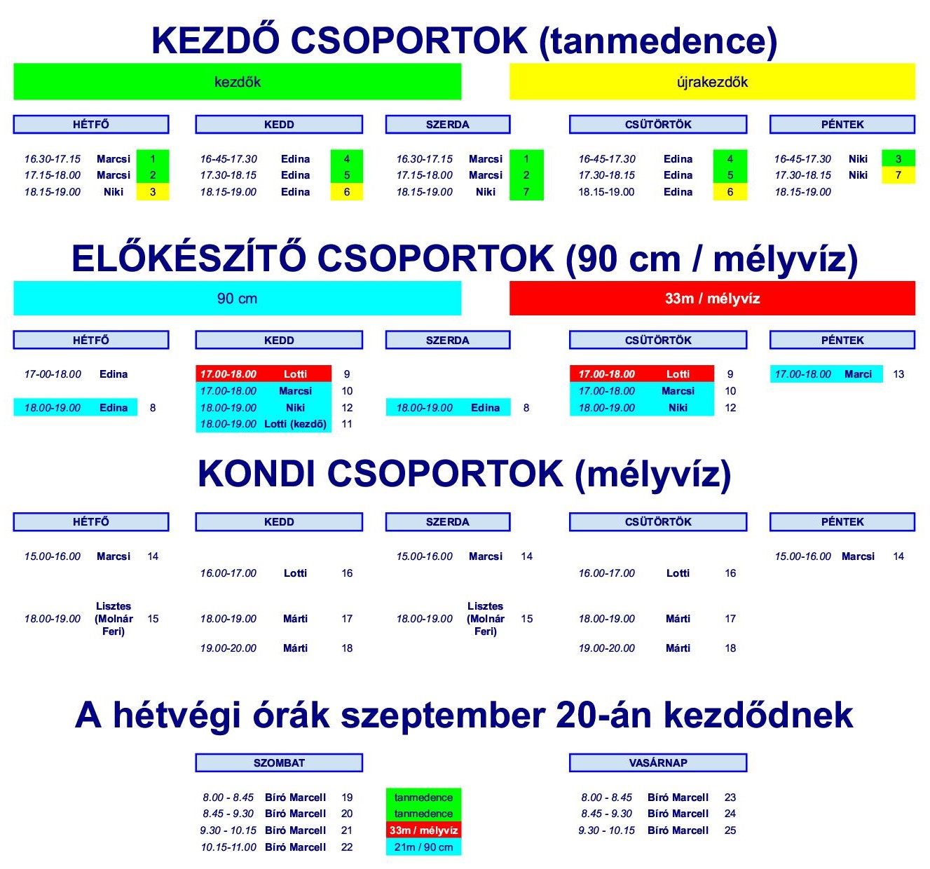 Az egyesületünkben induló csoportokba a jelentkezéseket az alábbi táblázat megfelelő elemének kiválasztásával és kattintással tudják megtenni.